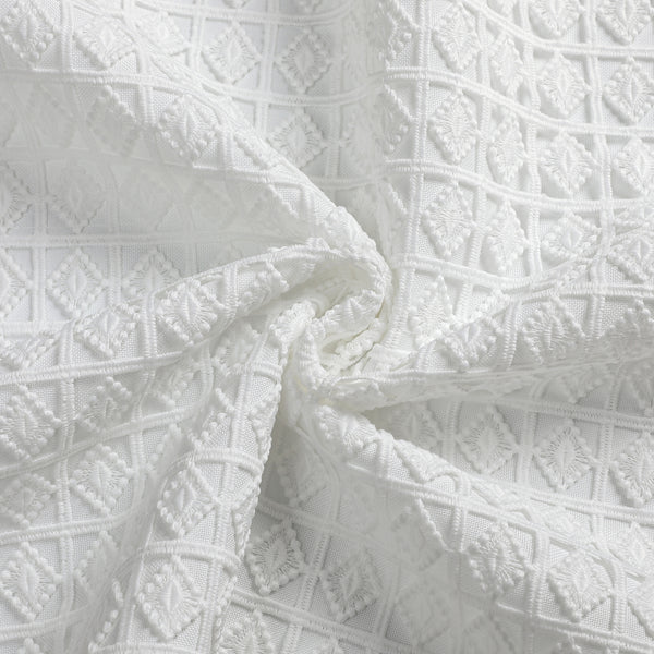 Our Majestic White Hex Tablecloth is perfect for a unique look at any formal affair. This exquisite white lace tablecloth features a mini hexagon design and is unlined, giving it a light, airy look and feel. With its classic elegance, this tablecloth is sure to elevate the look of your event.