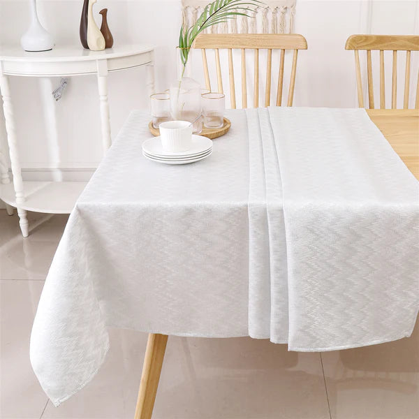 Jacquard Tablecloth #1355 Light Zigzag This jacquard tablecloth features an intricate light zigzag design to give your dining experience a unique and stylish touch. It's the perfect way to add a touch of elegance to any event.