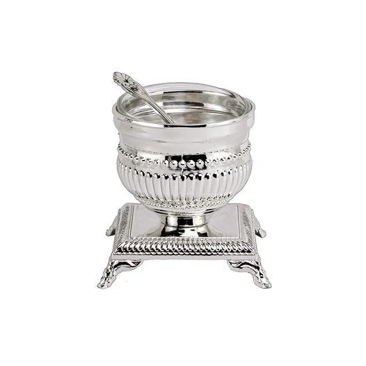 Keep your table setting elegant with our Silver Plated Salt Holder Beaded Design. Made with high-quality craftsmanship, the silver plating adds a touch of sophistication to any dining experience. The beaded design adds intricate detail while keeping your salt secure.