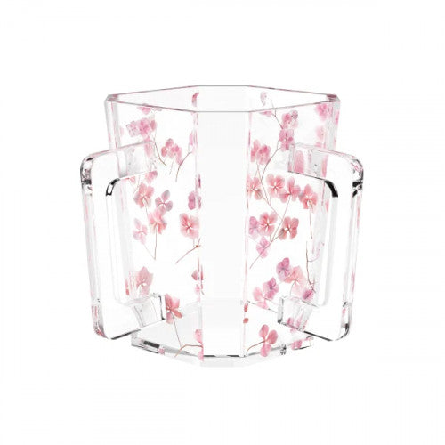 This exquisite Hydrangea wash cup showcases authentic blush pink hydrangea flower petals encased in transparent acrylic, making it a magnificent addition to any interior design.