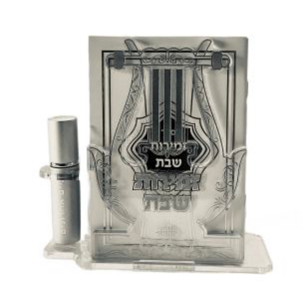 Acrylic Zemiroth Holder Set Harp Shape Gold W Mayim Achronim Spray Bottle