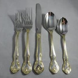 The Prestige Gold Baroque Flatware Set 20Pc is a gleaming addition to your dinner table. Crafted from 18/10 stainless steel, the baroque-style handles feature a rich gold finish, adding an opulent touch to any occasion. Dishwasher safe and rust-resistant, this set is an easy way to spruce up your dining experience
