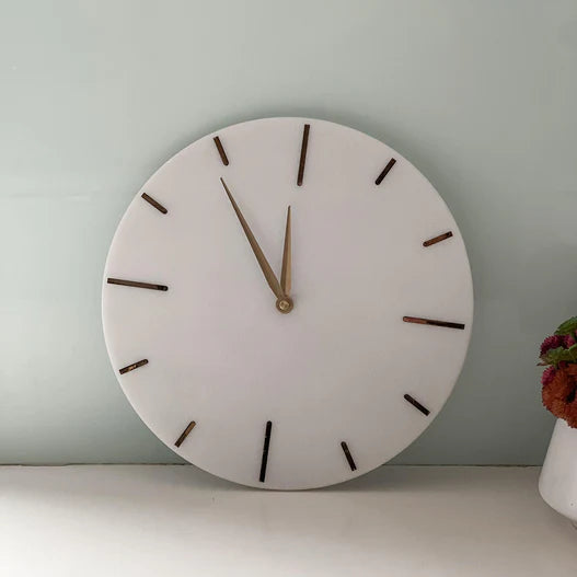 This modern marble 12" wall clock adds a touch of elegance and sophistication to any space. Crafted with sturdy materials, it features a reliable mechanism for accurate timekeeping. At 11.8" x 0.6", it's the perfect addition to any home or office. Great as a gift for any occasion!