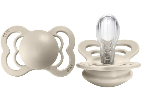 The BIBS Supreme pacifier has a symmetric shape made in lightweight polypropylene (PP) completely FREE from BPA, PVC and phthalates. The flat nipple is designed to support proper jaw development and minimize the pressure on the teeth. The nipple is symmetrically shaped and comes in both natural rubber latex and silicone.