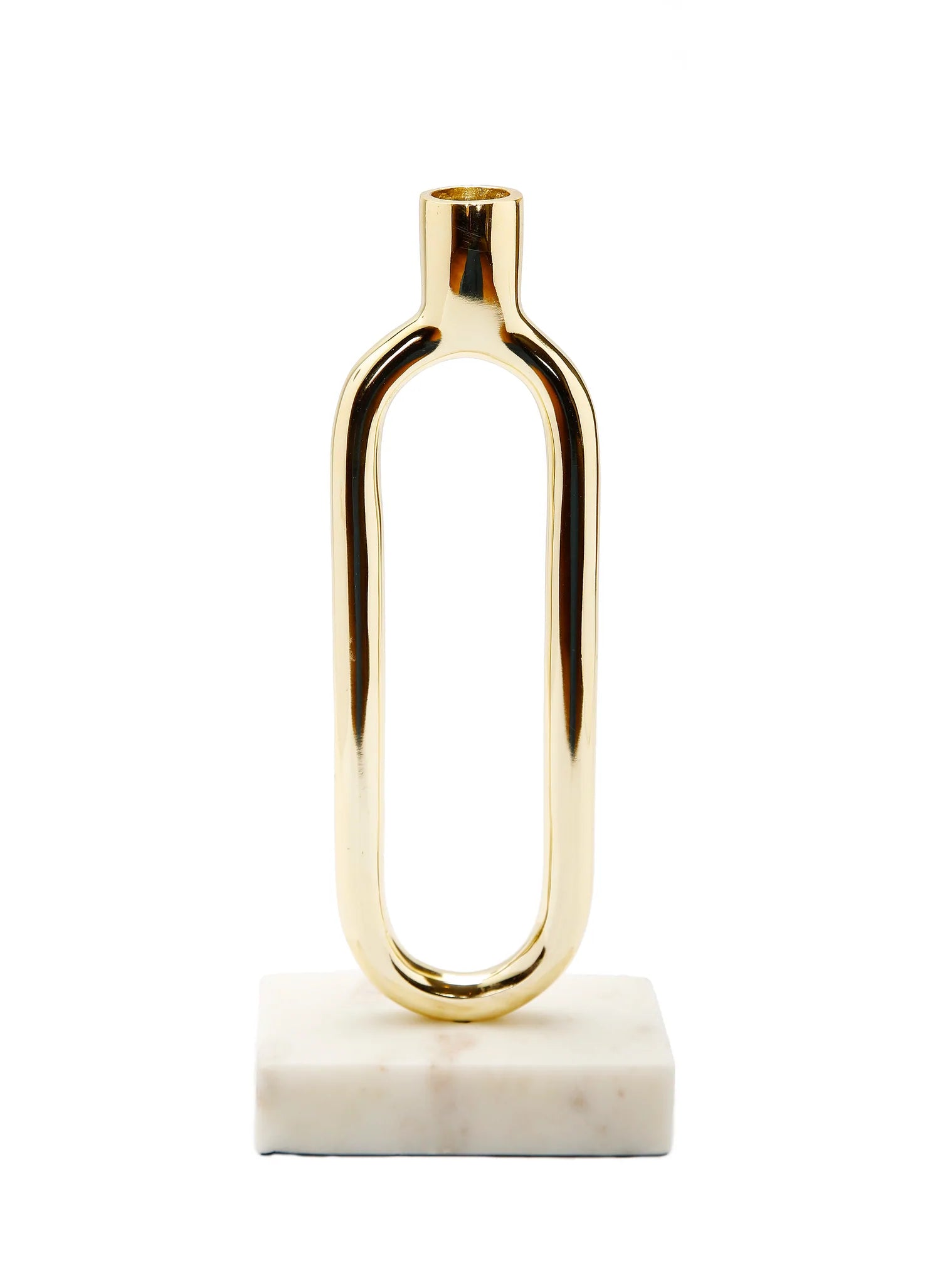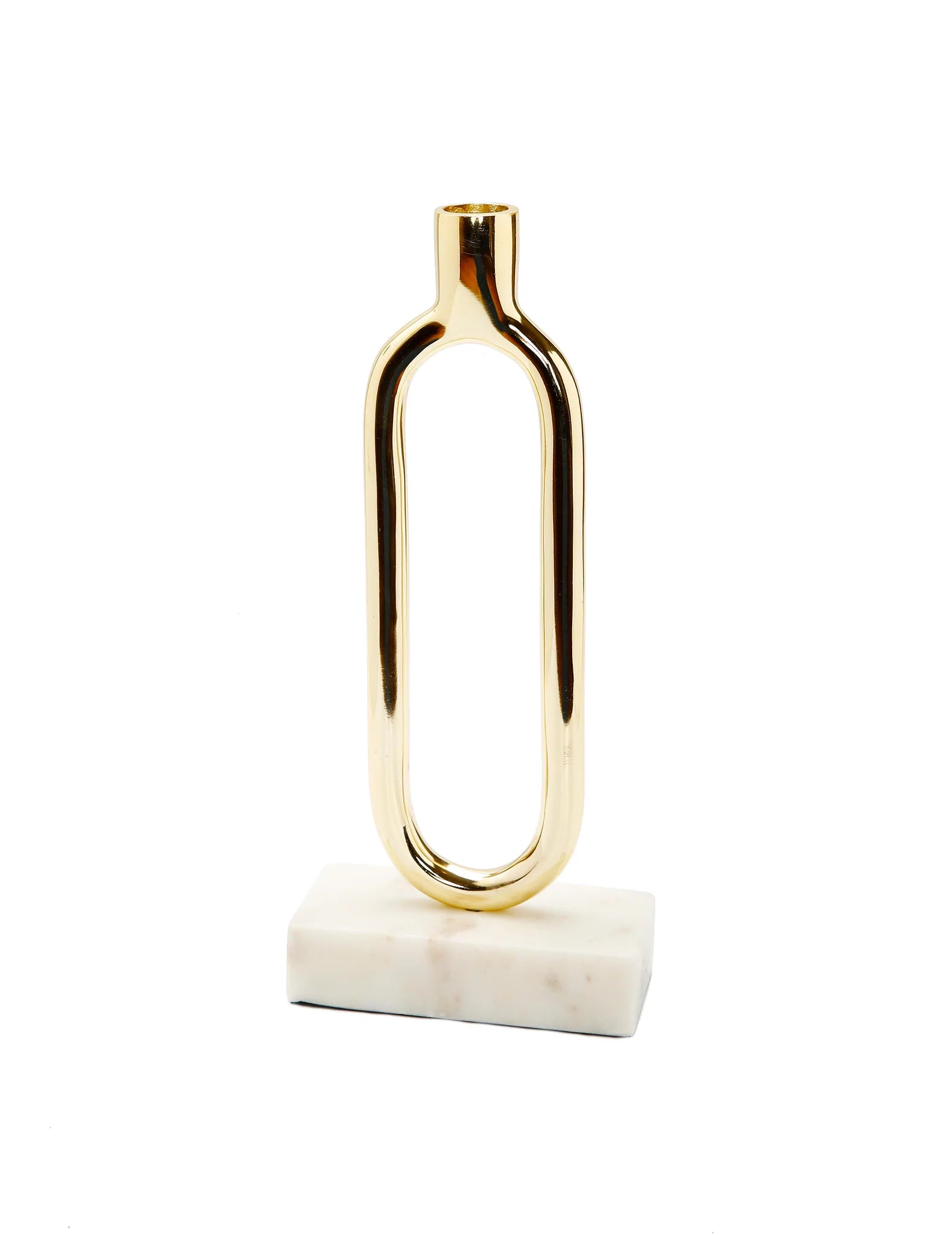 The contrast of these two materials, gold and marble, combine elegance with modern. Place them on top of a fire place for a fun twist on home widgets. Neat and elegant, these candlesticks are attractive table toppers. This piece of art ensures ultimate aesthetic value in the room.