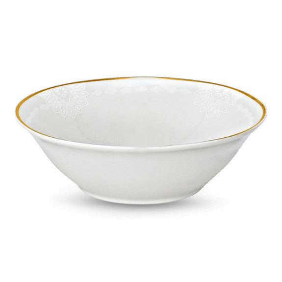 The Baroque fruit nappy bowls are clean and white, with a neat, thin gold rim lining the edge. Decorated with paisley floral designs on the rim which gives it personality and flair. Enjoy a meal served on the Baroque fruit nappy bowls and create that vintage and pleasant atmosphere at every meal.