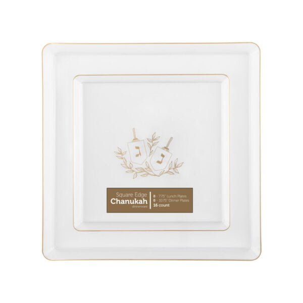 Gold/Clear Chanukah Square Plates 10" & 7.75″ 16pc