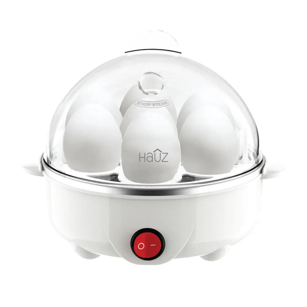 Enhance your kitchen with the Hauz all-in-one egg cooker. With its efficient design and user-friendly features, this cooker allows you to cook eggs, vegetables, and more without the use of oil. The durable stainless steel heating element ensures even cooking, while the clear lid and included trays make monitoring and cleanup effortless. Perfectly cooked eggs every time with auto-shutoff and audible tone.