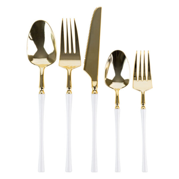 Infinity White/Gold Plastic Cutlery Set 32pc is backordered and will ship as soon as it is back in stock.