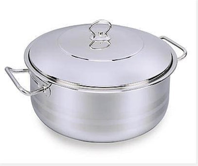 Korkmaz Mega Cookware. Mega cookware have a triplex heavy bounded capsule bottom which allow quick and even heat distribution. Featuring a stainless steel ergonomic handle and a stainless steel lid. It has a high polish attractive exterior. Made from 18/10 Cr-Ni Stainless steel.