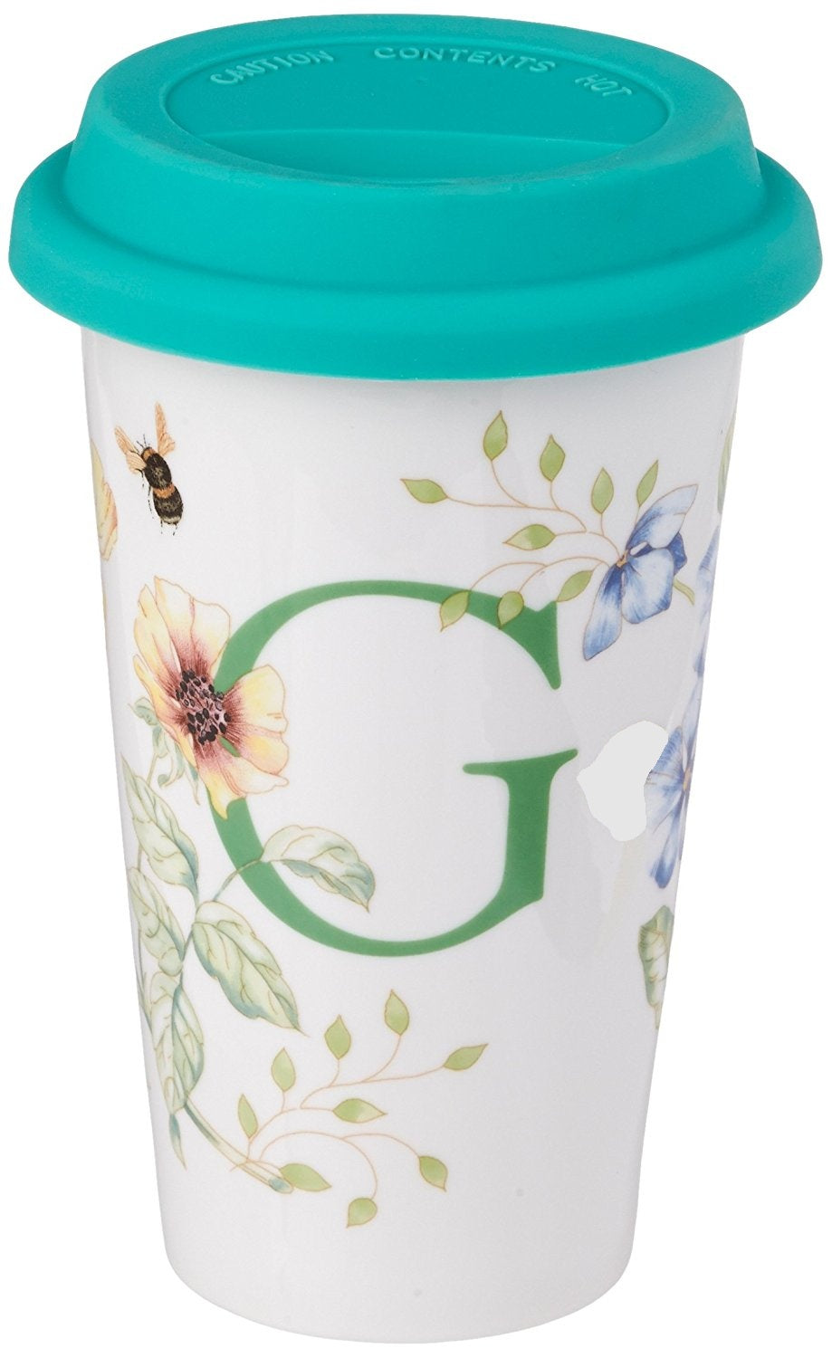 The most popular casual dinnerware collection in America, Butterfly Meadow is truly a contemporary mix and match classic. Inspired by the artistry of Louise Le Luyer, there are many delightful pattern varriations to choose from, each offering an exquisite array of butterflies, blooms and other wonders of nature, all rendered in a soft color palette. Crafted of the finest Lenox porcelain, Butterfly Meadow is the perfect choice for today. All of the dinnerware is safe for use in the dishwasher, the microwave and guarantees superior freezer to oven to table performance. Designed for chip-resistant durability, Butterfly Meadow will take a cherished place in your home for many years and offers the opportunity to expand your collection with the incredible range of dining, decor and gift giving choices available. Best of all, this versatile, stylish and fun collection is created by Lenox, America's first name in home entertaining. Known around the world for offering a unique combination of design, artistry and superior quality for over 125 years, Lenox has unmatched durability and is backed up by a lifetime replacement program to guarantee many years of enjoyment. Enjoy hot or cold beverages on the go with a double-walled thermal travel mug personalized with your initial "G". Hand wash only. Giftboxed.
