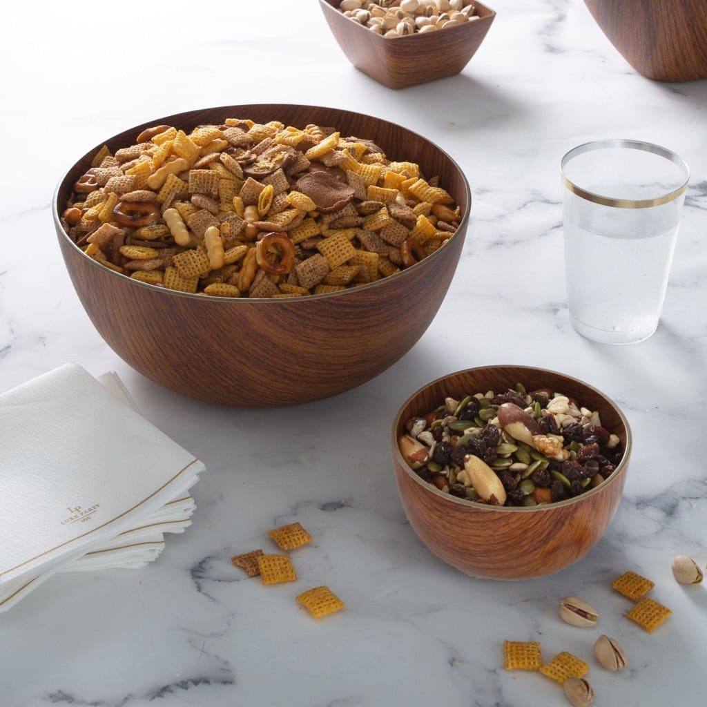 Part of the Mahogany Collection, this heavy-duty plastic wood like party bowls ,that elevate meals and parties from casual to elaborate.