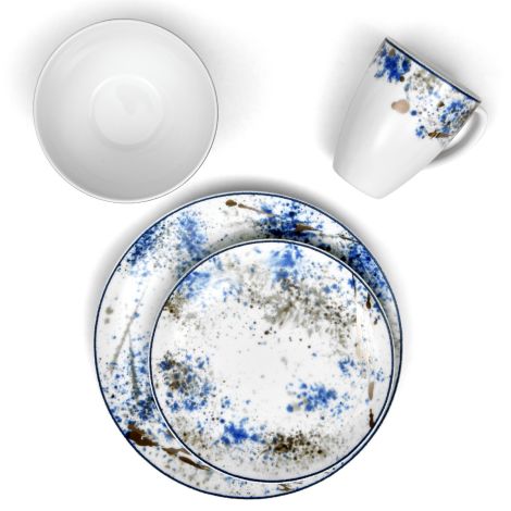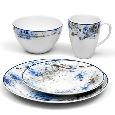 Elevate your dining experience with the Noritake Blue Nebula Road Dinnerware Set. Crafted from white porcelain, this set features a stunning design of blue and grey splatters, creating a unique and versatile look. With durable construction and dishwasher and microwave safe features, this set is perfect for everyday use.