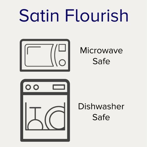 Satin Flourish is a beautifully classic collection in white porcelain, featuring the modern addition of microwave-safe gold! The prominent gold banding features flowers and scrolling leaves, perfect for elegant dinners while casual enough for daily use. Satin Flourish offers place setting components as well as an array of serving pieces and accessories. Satin Flourish is durable and dishwasher safe!