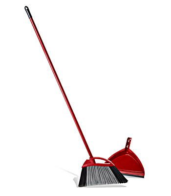 Large, angle power corner broom with dust pan, large angled head that reaches into corners & lets you cover more surface area, memory bristles resist bending & hold their shape, flare tip technology at end of bristles to capture fine dust & hair, uses bump guards soft edges to protect furniture, eco-friendly with bristles made from 80% recycled plastic bottles & head made from 50% recycled plastic is multi-surface friendly & cleans everything from tile floors to garage floors, dust pan that clips on to broom handle.