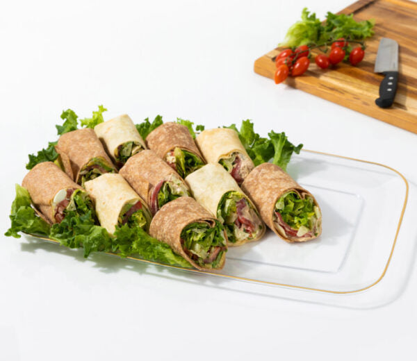 This sleek, Organic Clear/Gold Plastic Tray provides an elegant touch to any dish. The two-piece set packs versatility and modernity in 18in of convenience. Perfect for entertaining, enjoy a beauty and functionality all in one.