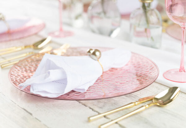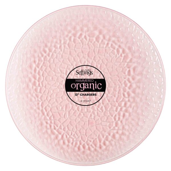 This 4-piece set of Organic Hammered Chargers is the perfect addition to your table setting. Crafted from organic materials, these stylish 13" diameter plates bring a touch of sophistication and glamour to any meal. With a hammered texture, these durable chargers are sure to add a touch of elegance to every dinner party.