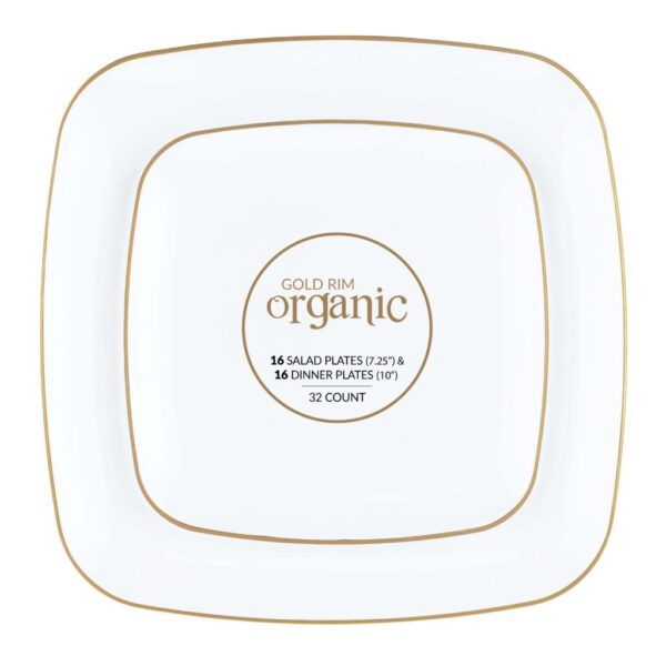 A 32-piece combo of 7.25-inch and 10-inch square plates helps make your special event memorable. Made with quality plastic and a timeless white and gold-rim design, each plate offers the look of china without the hassle of clean up. Ideal for any celebratory occasion.