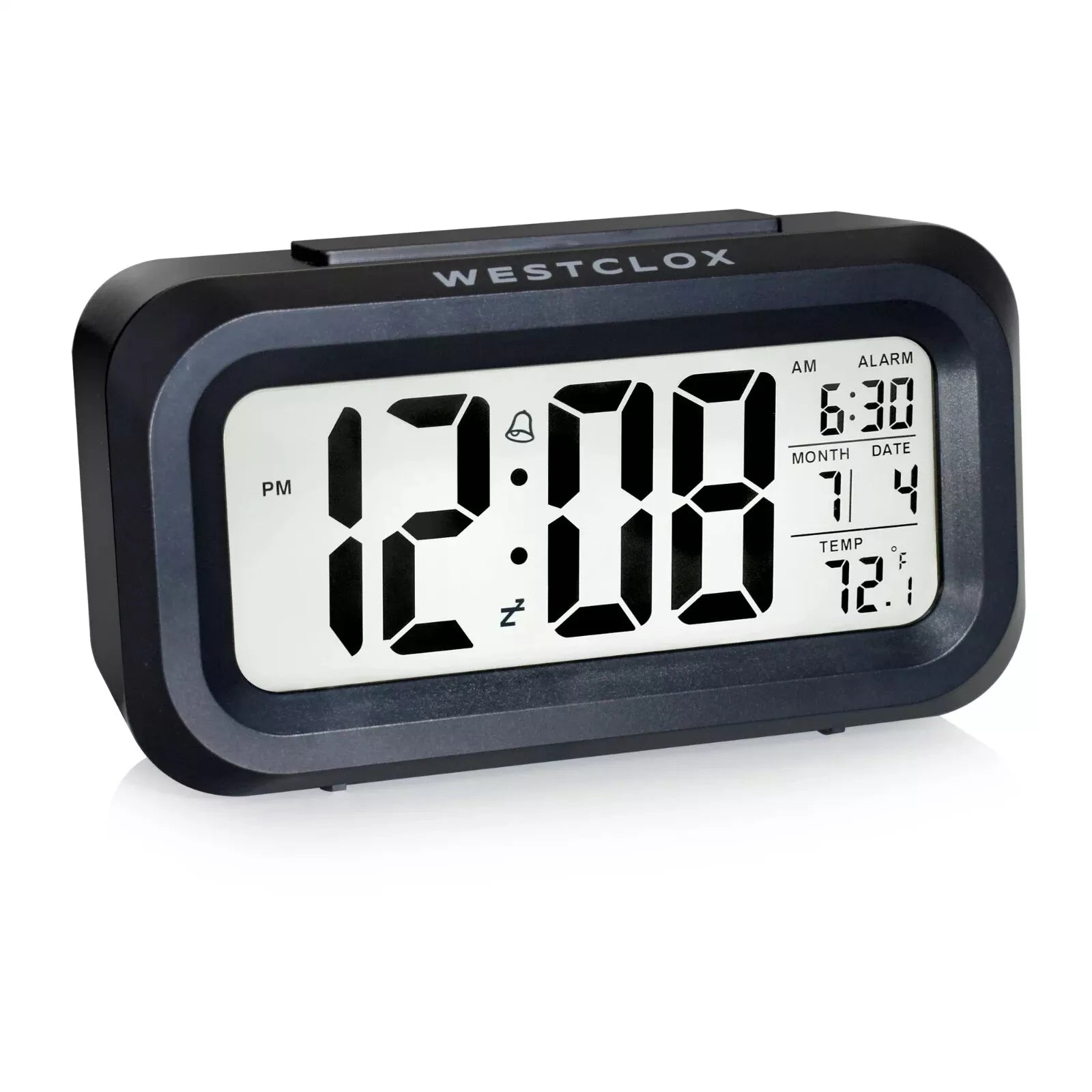 The Westclox digital alarm clock is a must-have for anyone who values convenience and easy-to-read displays. The clock features an LCD display with large time digits, a White LED backlight that illuminates on demand, and a built-in calendar with month and date display. The clock also shows the alarm time and indoor temperature. The large snooze button on top allows for a few extra minutes of sleep.