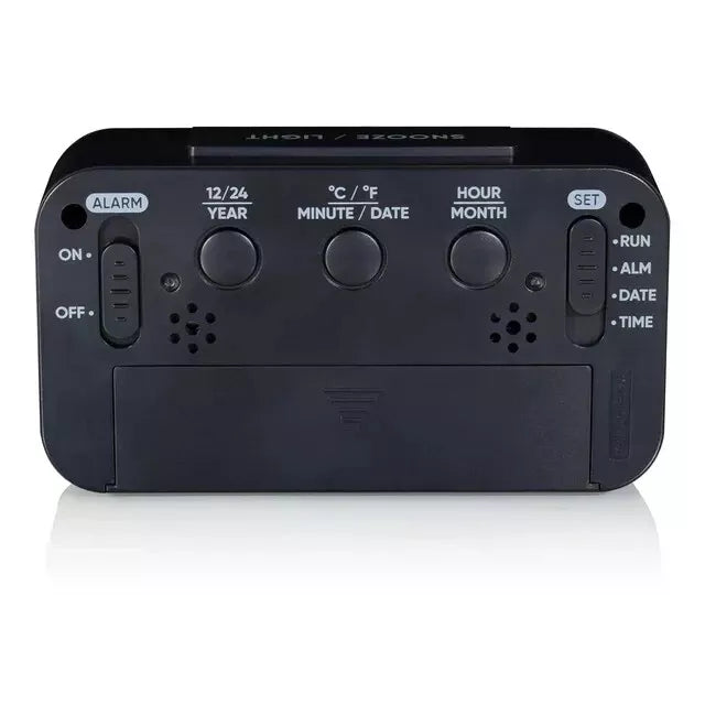 • Display features an On-Demand White Backlight with a push of a button on the top of the clock to give you 5 seconds of full brightness making it easy to see.