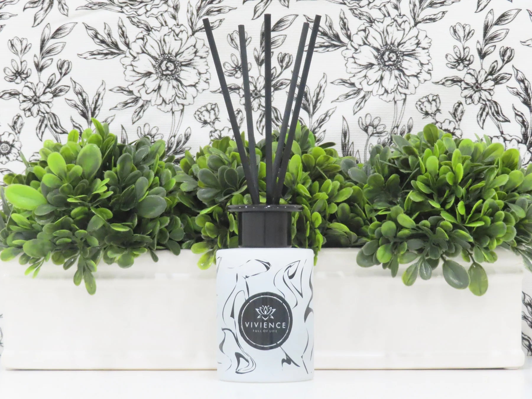 This white and black bottled diffuser decorated with some black reeds is a beautiful piece to display. Its unique dimension along with its refreshing aroma will attract every bystanders' attention. Enjoy its decorative display and refreshing scent at the same time.